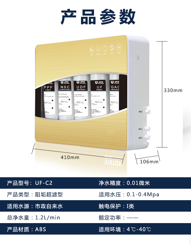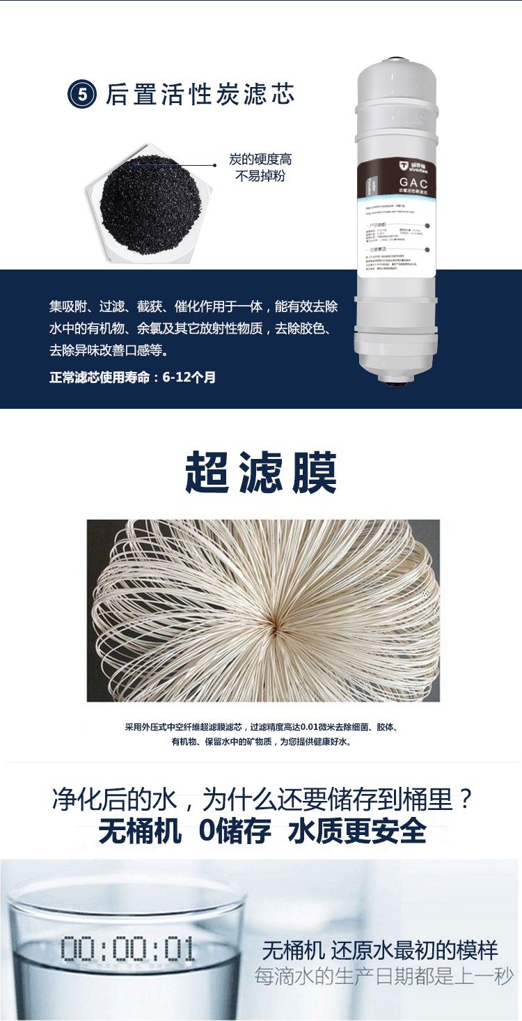 4、适合南方无水垢家庭,3-5口之家,解决厨房用水与饮水问题;